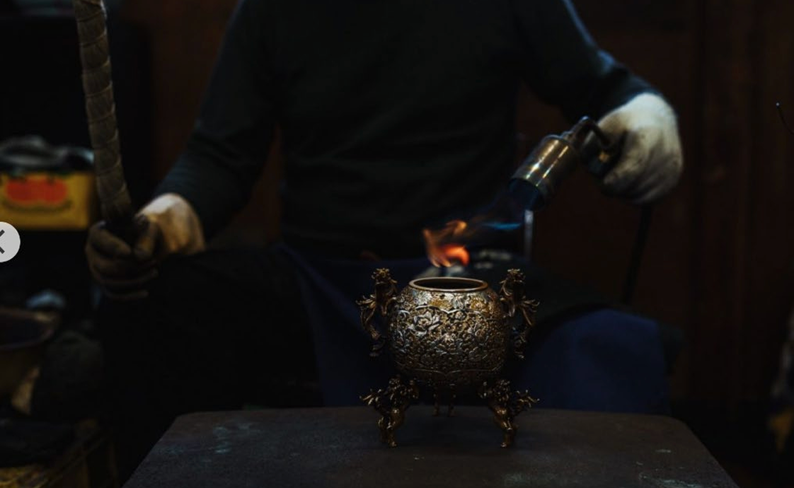 四津川製作所は 1946 年に初代堂主・四津川興四郎によって創業され、「喜泉堂」の名で香炉や花器を製造してきた。喜泉堂は 400 年の鋳物の歴史を持つ富山県高岡市に位置し、代々の高岡鋳物師の誇りと栄誉と共に受け継がれてきた百年の堂号である。数百年来、喜泉堂は金屋町の匠たちが世代を超えて受け継いできた古法の技と美意識を受け継ぎ、極限の完璧さを追求し続けている。匠の心をもって現代の生活様式を巧みに取り入れ、天工の美を備えた茶道芸術や工芸品を創作し続けている。喜泉堂の作品製作は、龍文堂の名人・大国寿朗に師事し、鋳造技術に優れ、彫刻に長け、図柄の表現力が豊かで、芸術的造詣は独特かつ超凡である。