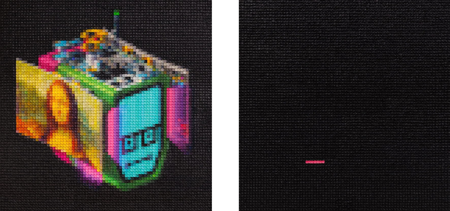 创作“人民币系列”六件作品,以 16,562 个手工调制的色彩方块重构纸币图像;2012 年作为纪录片《人民币》全国播出首集的开篇,首次进入大众视野。